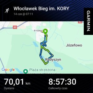 W okolicach Włocławka odbywa się upamiętniający wokalistkę Korę bieg. Bieg 12-o godzinny, po Gostynińsko-Włocławskim Parku Krajobrazowym. Tym razem dodatkowo oprócz biegania była opcja jazdy rowerem. Któż mógł skorzystać? No właśnie – tylko ta ekipa: Iwona Centkowska, Paweł Centkowski i Grzegorz Gąsiorowski. Wyszło 70 km biegania i nieskończoność rowerem 😉