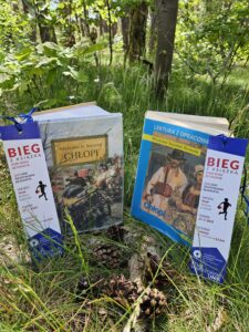 Wiele osób nie czyta książek, niewielu biega, a tutaj się okazuje ,że można połączyć jedno z drugim. Bieg z książką Pory Roku Reymonta. Bieg bez pomiaru czasu (bo nie o czas tu chodzi, a raczej biega), dystans 4 wiorsty (4×1,07km=4,3 km). Dodatkowym biegiem była sztafeta z książką po 4×80 prętów rolniczych. Na ten event biegowy wybrali się ; Iwona Centowska i Grzegorz Gąsiorowski.