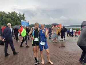 2 czerwca 2024 Ślesin. To będzie dzień debiutu Witka Tokarskiego na dystansie 1/8 IronMan (czyli 475m pływania, 19km jazdy rowerem i 5,5 km biegu)! Pogoda dziś nie rozpieszczała, ale Witek dał radę, bo jak napisał do naszej centrali jego trener „Witek to twardy koleś”. I tak właśnie jest! Gratulacje.