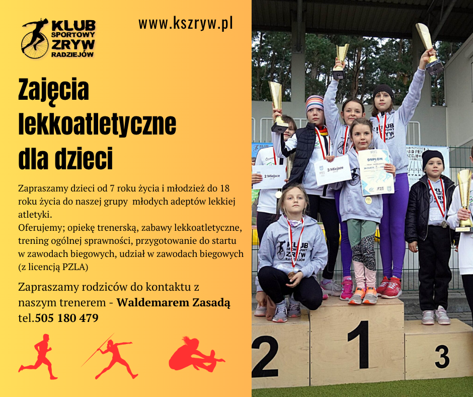Od maja do listopada 2025 roku KS ZRYW Radziejów uczestniczy w Rządowym Programie KLUB. W ramach tegoż programu prowadzimy szkolenie lekkoatletyczne dla dzieci i młodzieży w wieku do 18 roku życia.