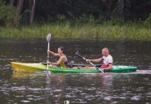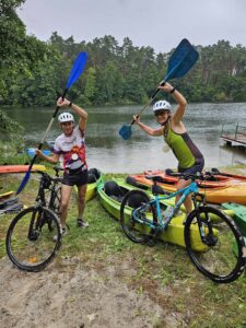 TKKF Kolejarz Bydgoszcz zaproponował coś nowego. I znalazła się u nas pani , która lubi wyzwania. Połączenie pływania kajakiem, jazdy rowerem MTB oraz biegania może nie jest odkrywcze, ale w kujawsko-pomorskim nic takiego nie wdziano już dawno. Tak więc w ostatni weekend , kiedy było załamanie pogody i jakieś deszcze/wiatry itd. Iwona Centkowska w tandemie z Grzegorzem Gąsiorowskim wystartowała na dystansie długim TriMotion. Czas wszystkich dyscyplin wyszedł to 2:25:00. A na dystans składało się 11 km rowerem, 3 km kajakiem, i 11 km biegania.