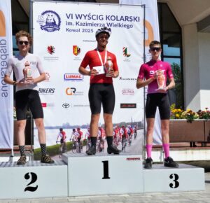 Dziś przy eleganckiej pogodzie jak dla kolarzy (słabiutki wiaterek) odbyła się kolejna edycja szosowego wyścigu w Kowalu. Na starcie stanął jeden zawodnik naszego klubu Jędrzej Dominiak. Dystans 68 km na dwóch pętlach Jędrzej ukończył na 40 miejscu OPEN, 2 miejscu w kategorii M18, czas 01:38:20